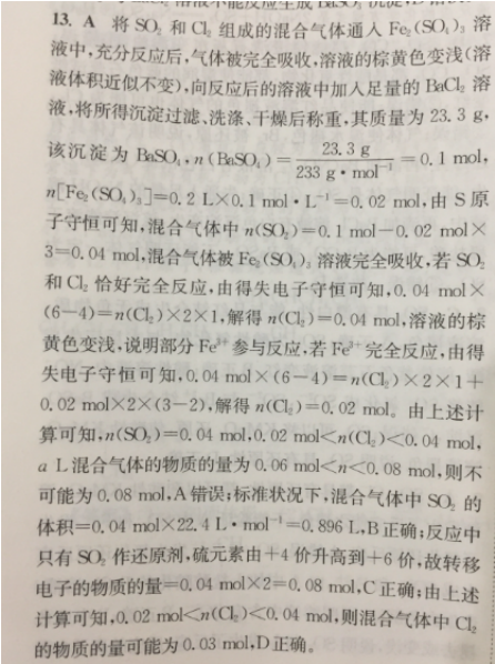 广东省东莞市,2024-04-21,化学,《高中化学-小题狂做-必修第二册RJ-基础过关》,2020年11月第1版,P2T13,想知道整道题是怎么算的,完全不会。